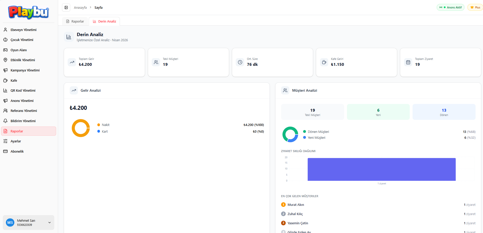 Playbu oyun evi yönetim sistemi, işletmenizi sizin yerinize analiz eder ve size en doğru kararları sunar. Ebeveyn bildirimleri, etkinlik yönetimi ve tüm operasyon tek yönetim panelinde.